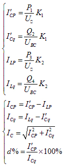 按圖1-3的試驗接線,測量出補償電流和殘余電流回路的有功功率及無功功率,從而計算出補償電流、殘余電流的有功分量及無功分量、系統的電容電流和阻尼率。